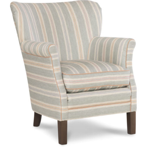 This chair is the definition of cozy without feeling bulky. Its gently rolled arms, supportive seat, and classic silhouette make it the kind of piece you naturally gravitate toward—whether it’s for morning coffee, afternoon reading, or winding down at the end of the day. Upholstered in a soft, subtly striped fabric, it adds quiet pattern and warmth without overwhelming the room.
