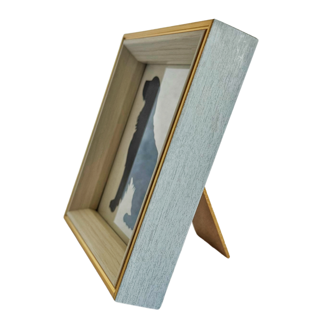 Perfect for hanging or perching on your favorite shelf or surface, this charming dog, silhouette portrait is a Nested exclusive and was inspired by our very own shop dog, Georgia. Golden Retrievers are so gentle and loving, and that spirit comes through in this charming artwork. Dense watercolor paper adds beautiful, rich texture and crispness to the image. Artwork can be rested vertically on the frame, or displayed with the easel-style attachment.