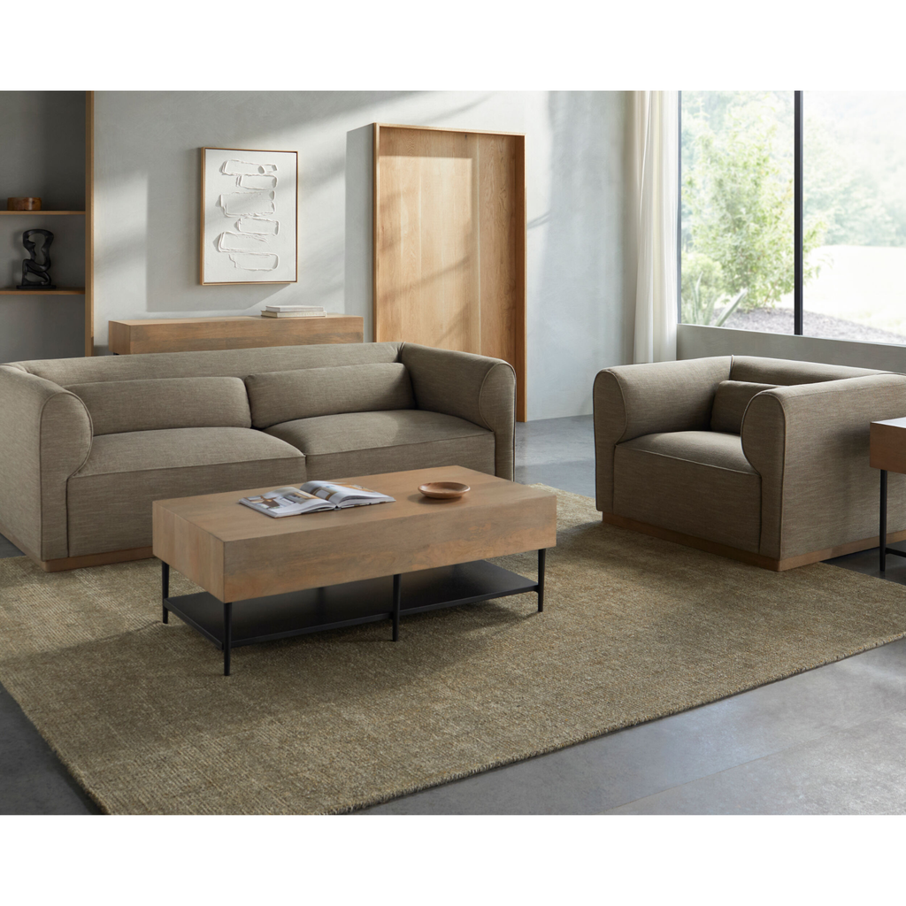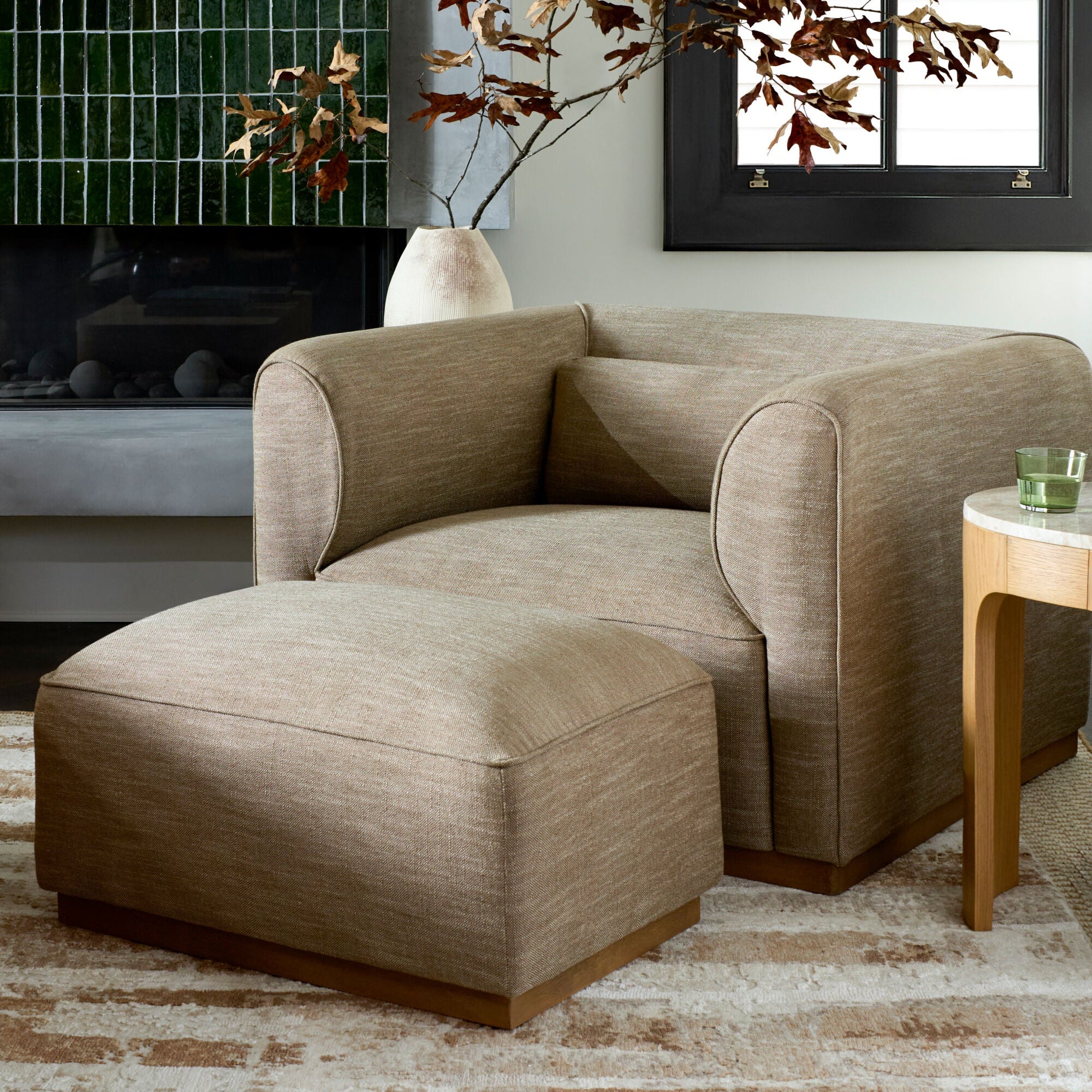 This Linen Blend Modern Ottoman is the definition of everyday ease. Upholstered in a soft, taupe-hued fabric with a subtle, heathered texture, it’s the perfect neutral to play well with any style. The generously cushioned top invites you to kick up your feet, set down a tray of drinks, or pull up extra seating when the house is full. A simple wooden plinth base adds just the right grounding touch, keeping the look clean and tailored. Versatile, comfortable, and quietly stylish —this ottoman is a hardworking piece that makes life just a little softer.