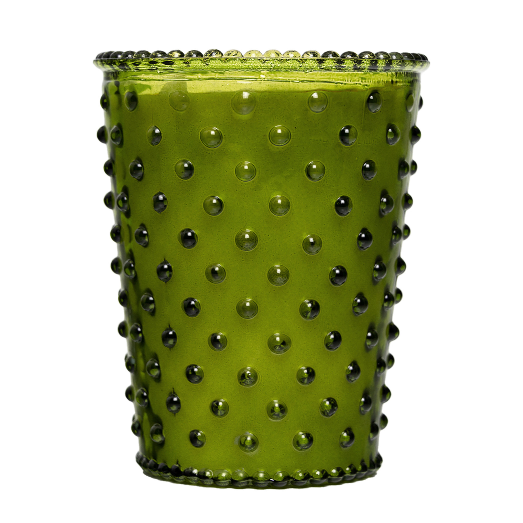 A crisp green pear scent blended with juicy lime and soft woody musk brings a fresh, elegant calm to any space. The decorative hobnail glass vessel adds a subtle touch of sophistication and can be repurposed once the candle is finished.