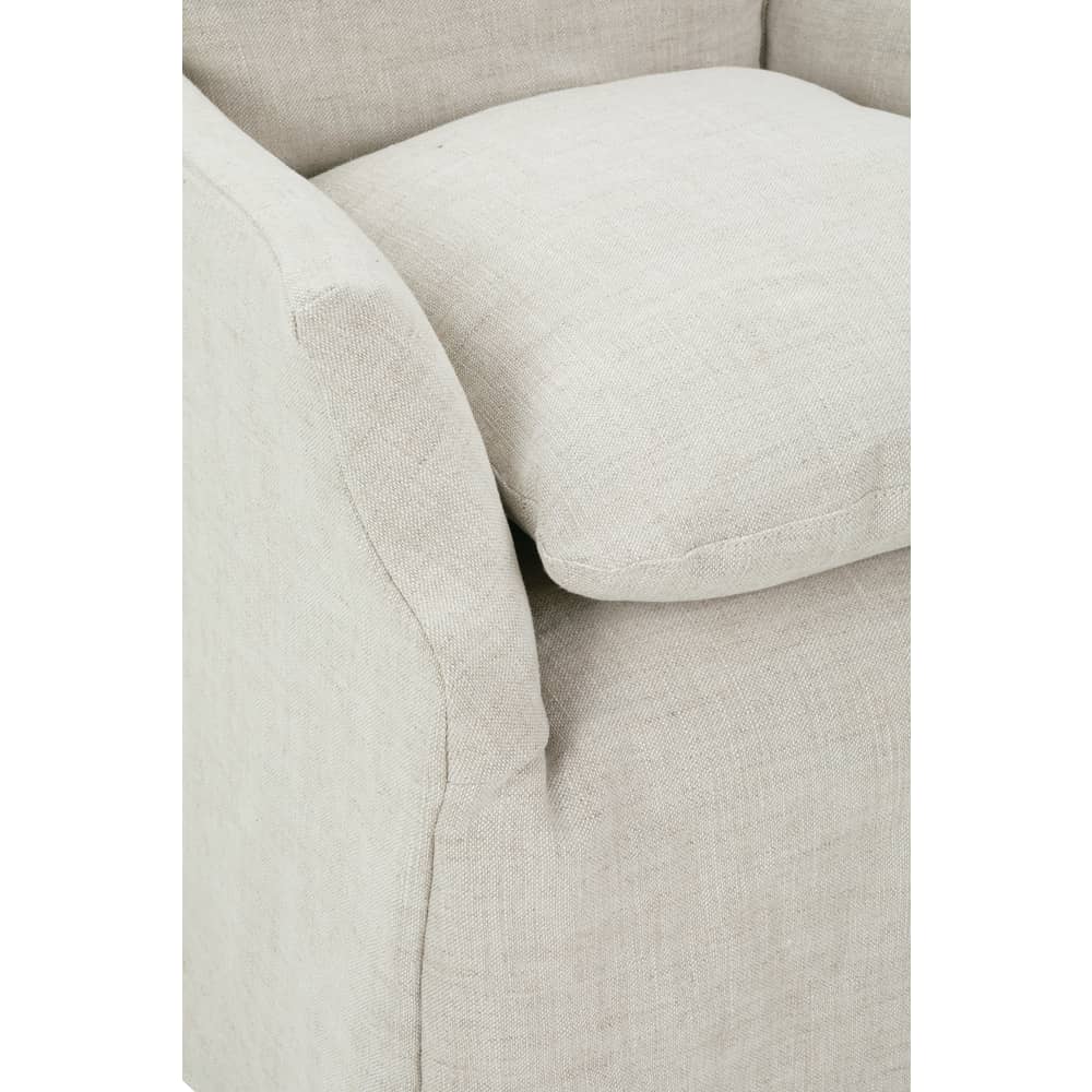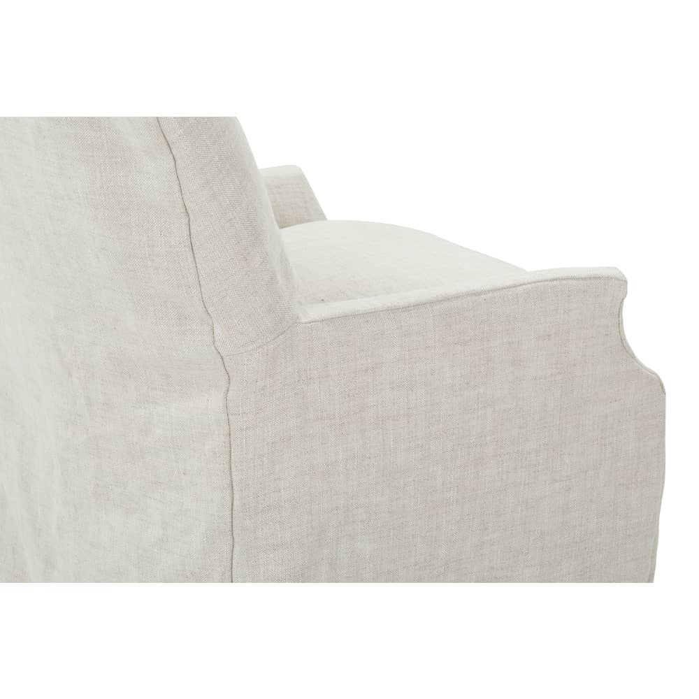 Elevate your dining space with the graceful beauty and timeless design of the Cece Slipcovered Dining Chair. Crafted with a seamless blend of natural wood and soft, durable upholstery, this chair effortlessly merges style and comfort. Its slender, tapered legs offer an elegant silhouette, while the plush seat ensures long-lasting support for those evenings spent gathering around the table.