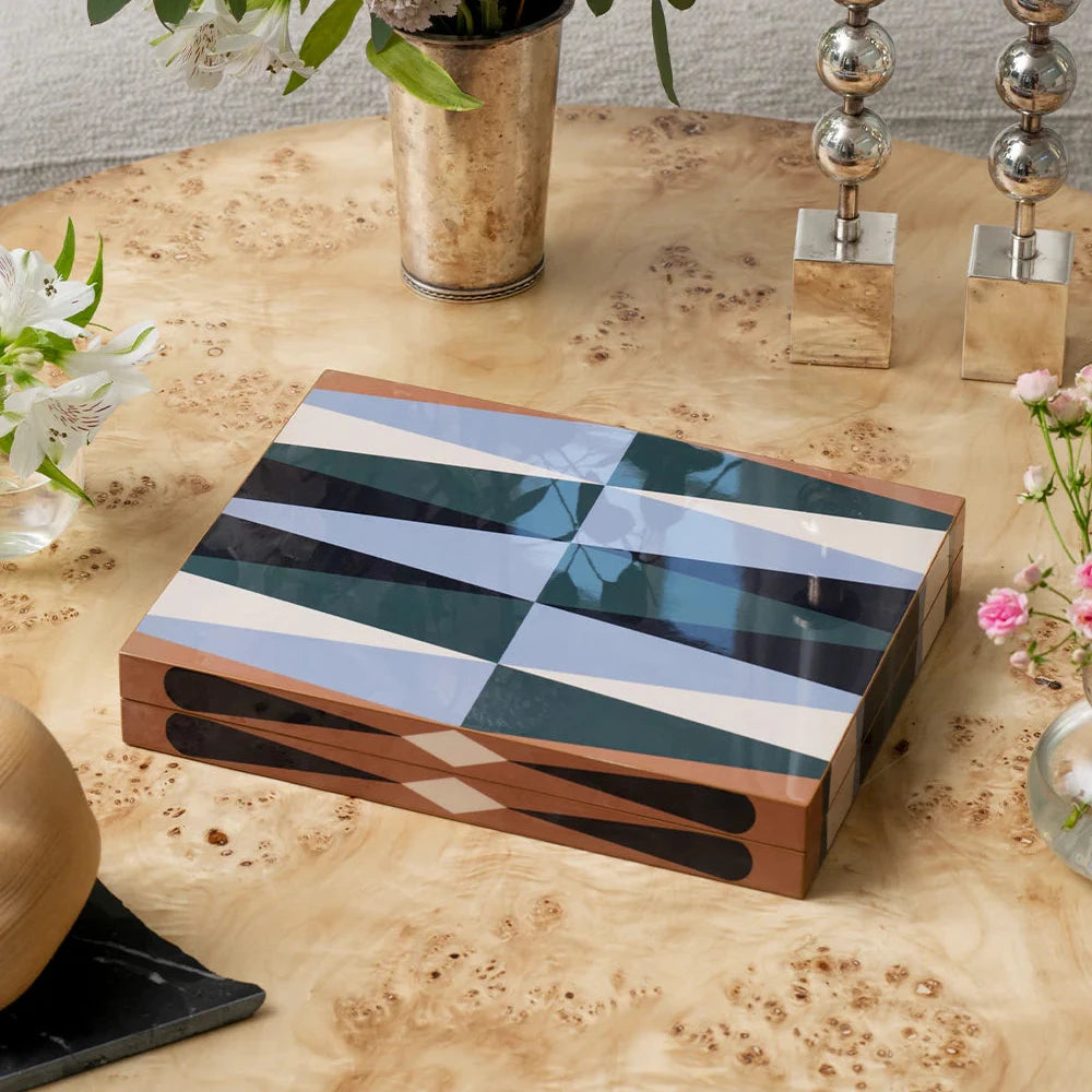 Discover this stunning Lacquered Backgammon Set, a true masterpiece of design and elegance. Featuring a large board made of wood and adorned with exquisite acrylic pieces, it beautifully combines classic charm with modern sophistication. Whether you choose to play or display it, this set is sure to impress.