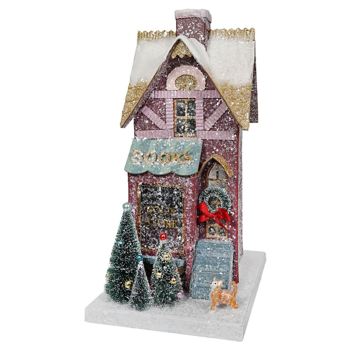 The Christmas Book Shop is a beautifully detailed miniature house inspired by classic holiday villages and timeless English charm. Handcrafted from pressed paper and hand-painted, it features glittering accents, festive trims, and nostalgic design elements that evoke the warmth and magic of Christmas. Perfect as a centerpiece or part of a larger village display, it adds a cozy, storybook touch to seasonal décor.