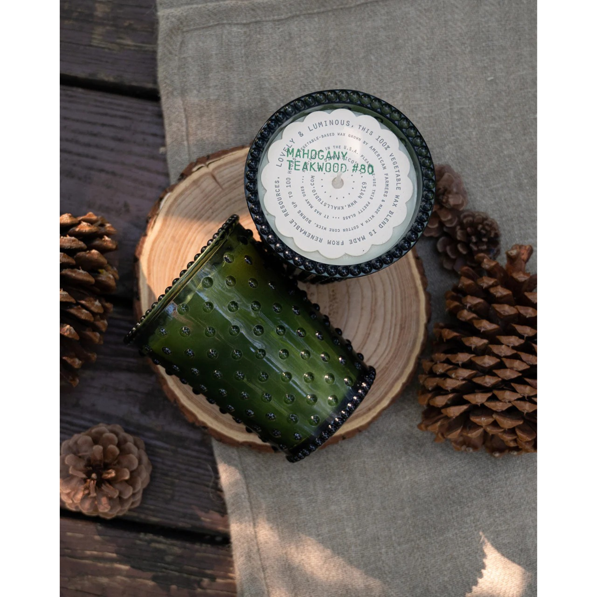 Experience the rich, woodsy fragrance of the Mahogany Teakwood Hobnail Glass Candle. Made with high-quality ingredients, this candle offers a long-lasting burn time and a captivating scent that will envelop your space with a sense of warmth and comfort. The beautiful hobnail glass container adds a chic touch to any room, making this candle a stylish and versatile choice for any home.