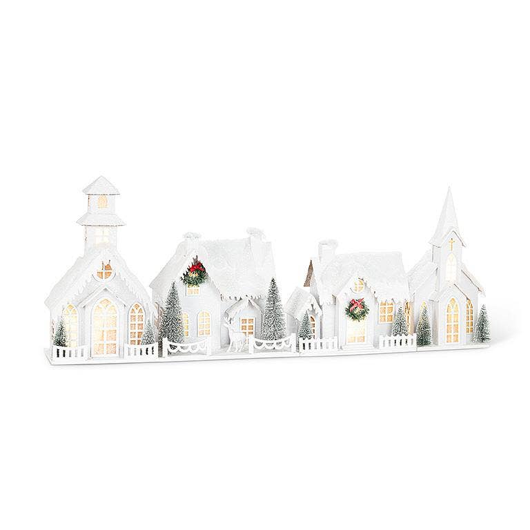 Add some illuminating classic style to your holiday decor with this evocative Medium Snowy House with LED Lights. Popularized during the late 1920s, this charming papercraft house features lots of fun and festive details, from its snow-dusted wreath and tree to its shed and picket fence – brightened with warm LED lights for up to 75 hours of ambient illumination. Requires 2xAAA batteries (not included).