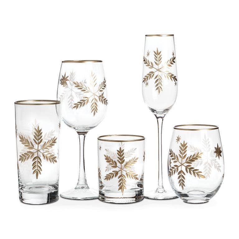 Make your entertaining extra-festive this season with this elegant Snowflake Tumbler. Crafted out of glass, this medium-sized tumbler is accented with a golden rim and eye-catching snowflake design to elevate all your holiday partaking and celebrating. Also available as a stemmed goblet, highball glass and champagne flute.