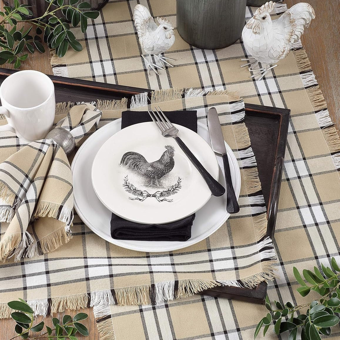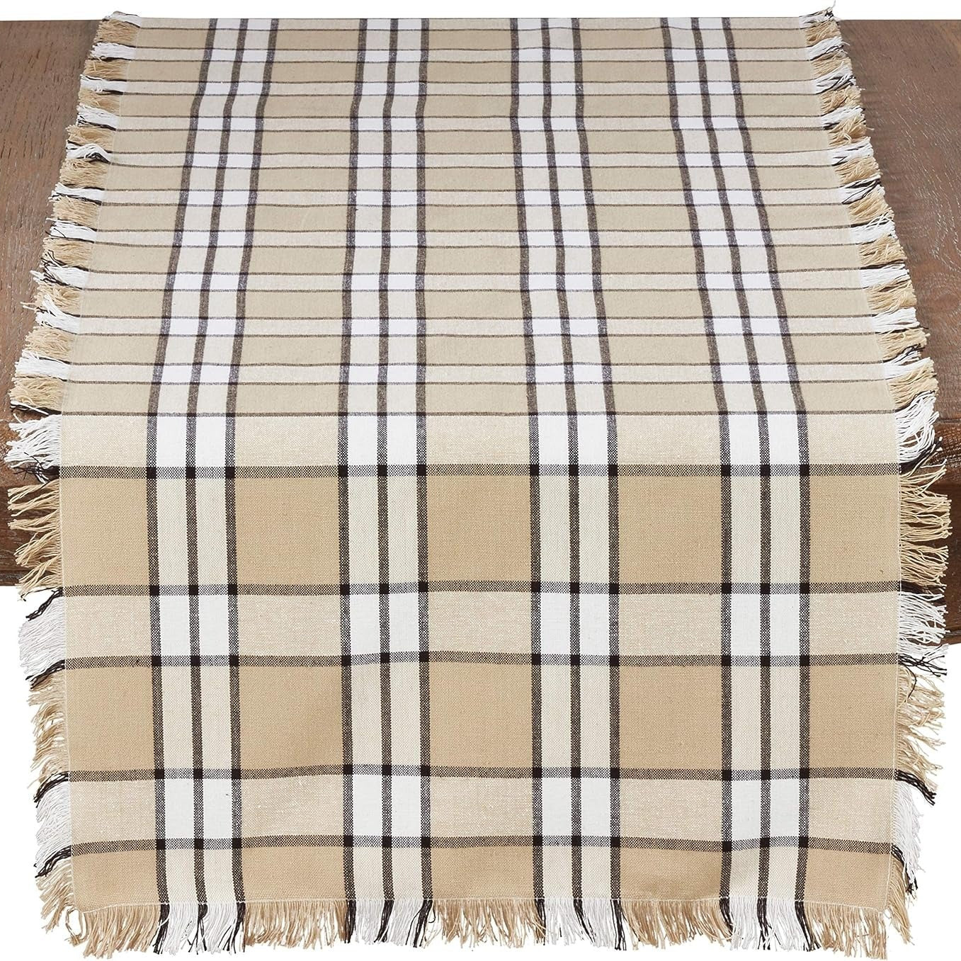 A classic khaki plaid table runner that blends rustic charm with simple elegance, perfect for everyday use or layered holiday décor.