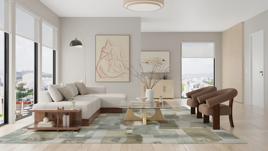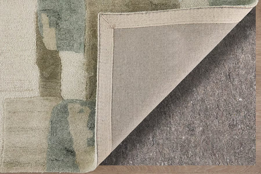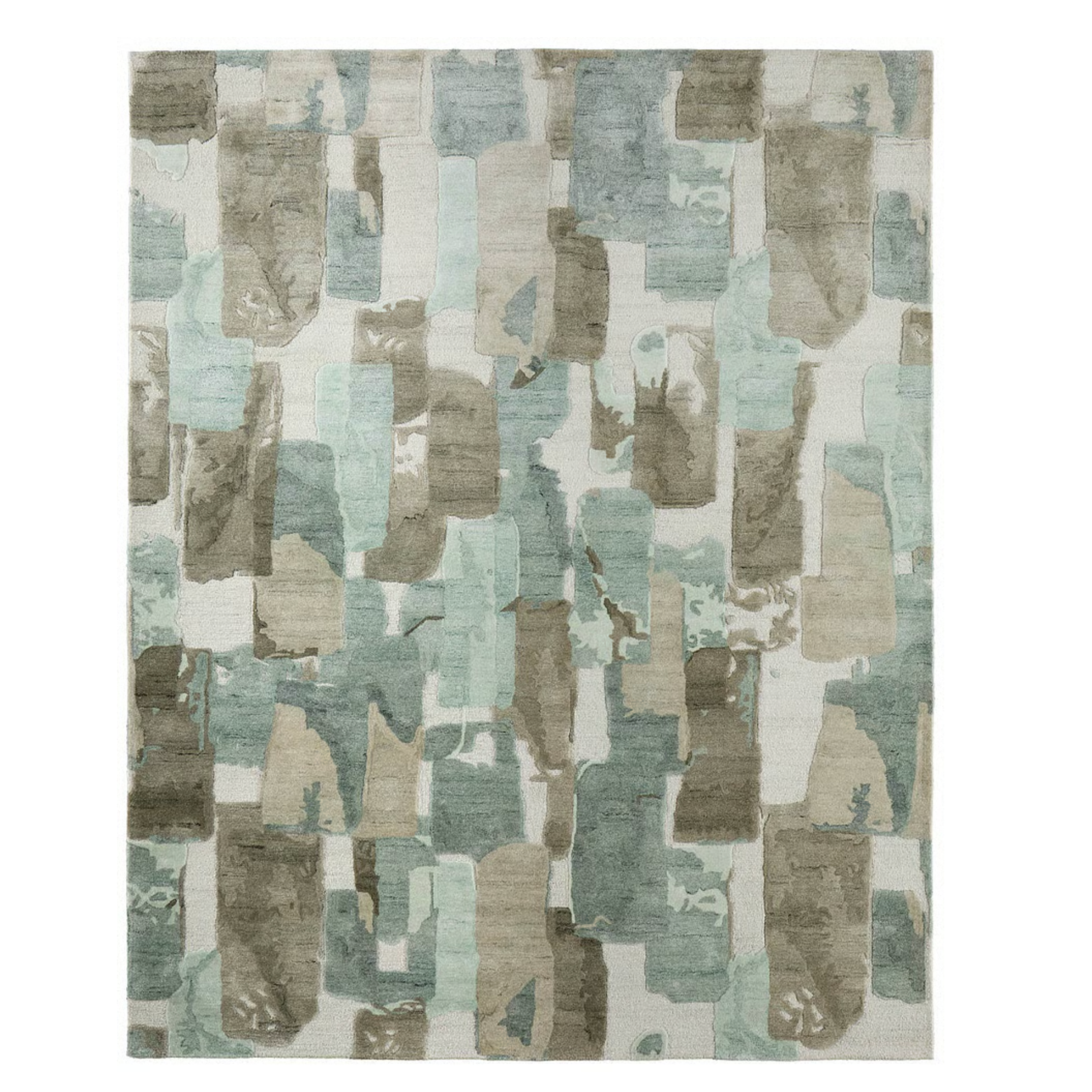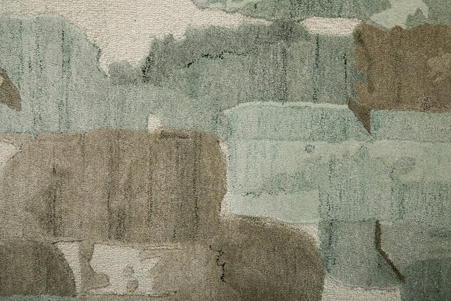 The hand-tufted Kendall rug is a blend of luxurious materials with contemporary, abstract designs. The soft textures are enhanced by a combination of cut and loop pile, creating depth and visual interest. Featuring muted tones of blues, greens, and neutrals, this rug is versatile for modern or transitional interiors. The collection balances durability, comfort, and artistic appeal, making the designs sophisticated choice for an elevated sense of style.