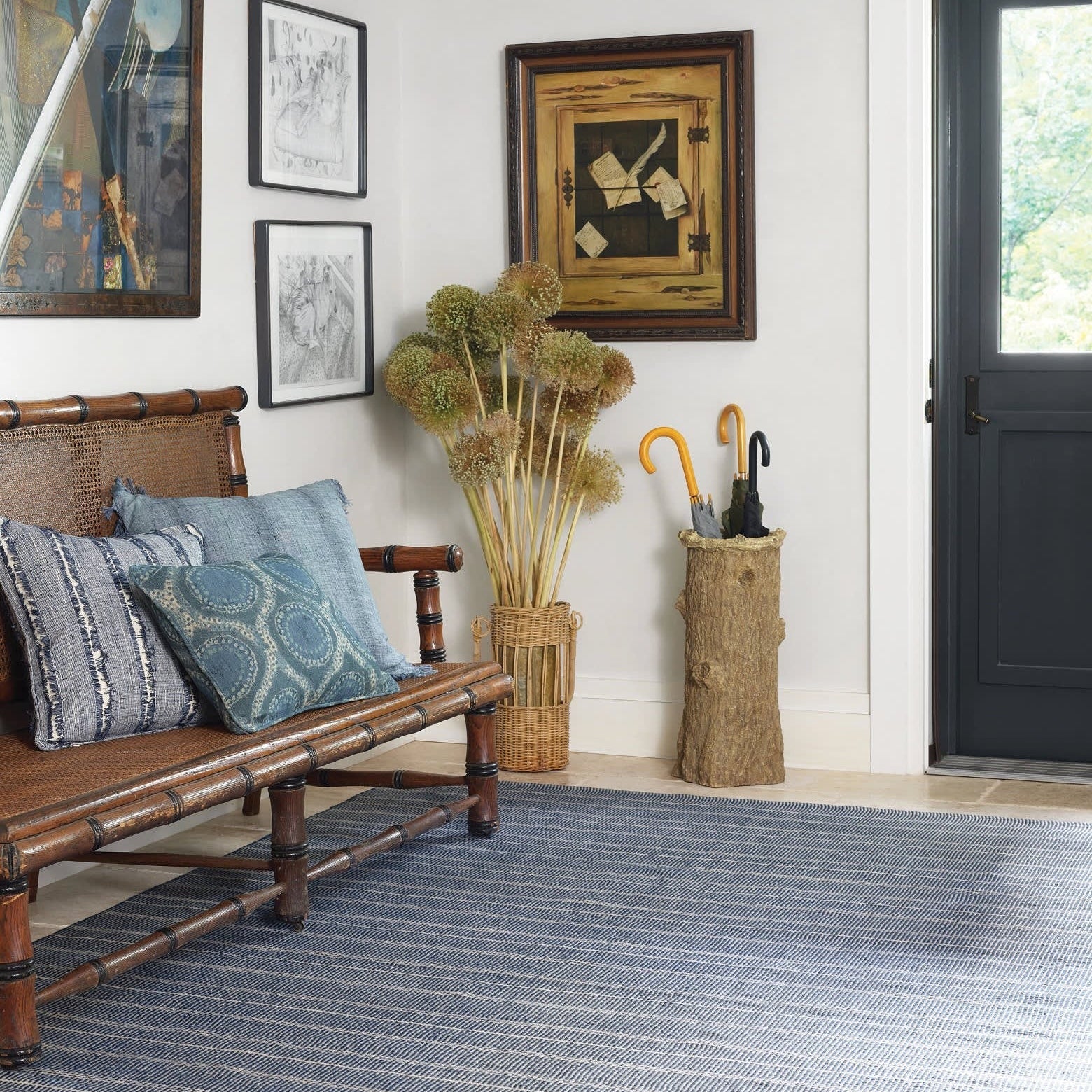 A durable, handwoven rug designed to withstand everyday indoor and outdoor use. The Samson rug in navy or black features a modern stripe pattern that adds texture, contrast, and timeless appeal to any space. Its performance construction makes it an ideal choice for high-traffic areas including entryways, kitchens, patios, mudrooms, and covered outdoor spaces, offering both style and long-lasting functionality.