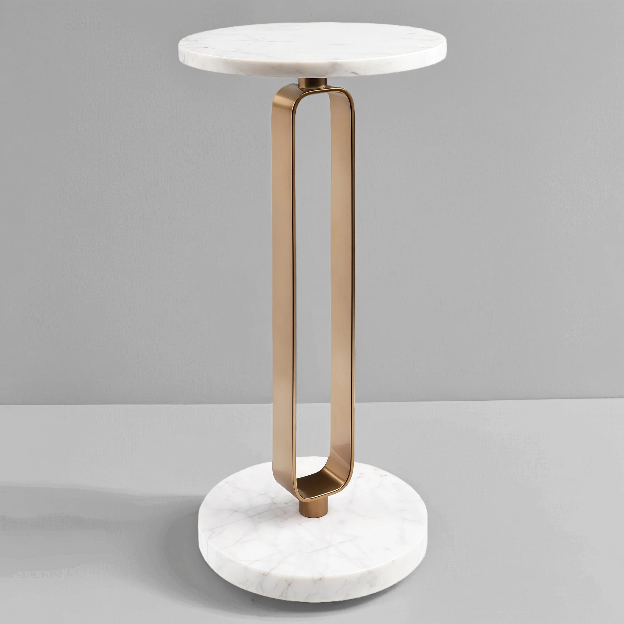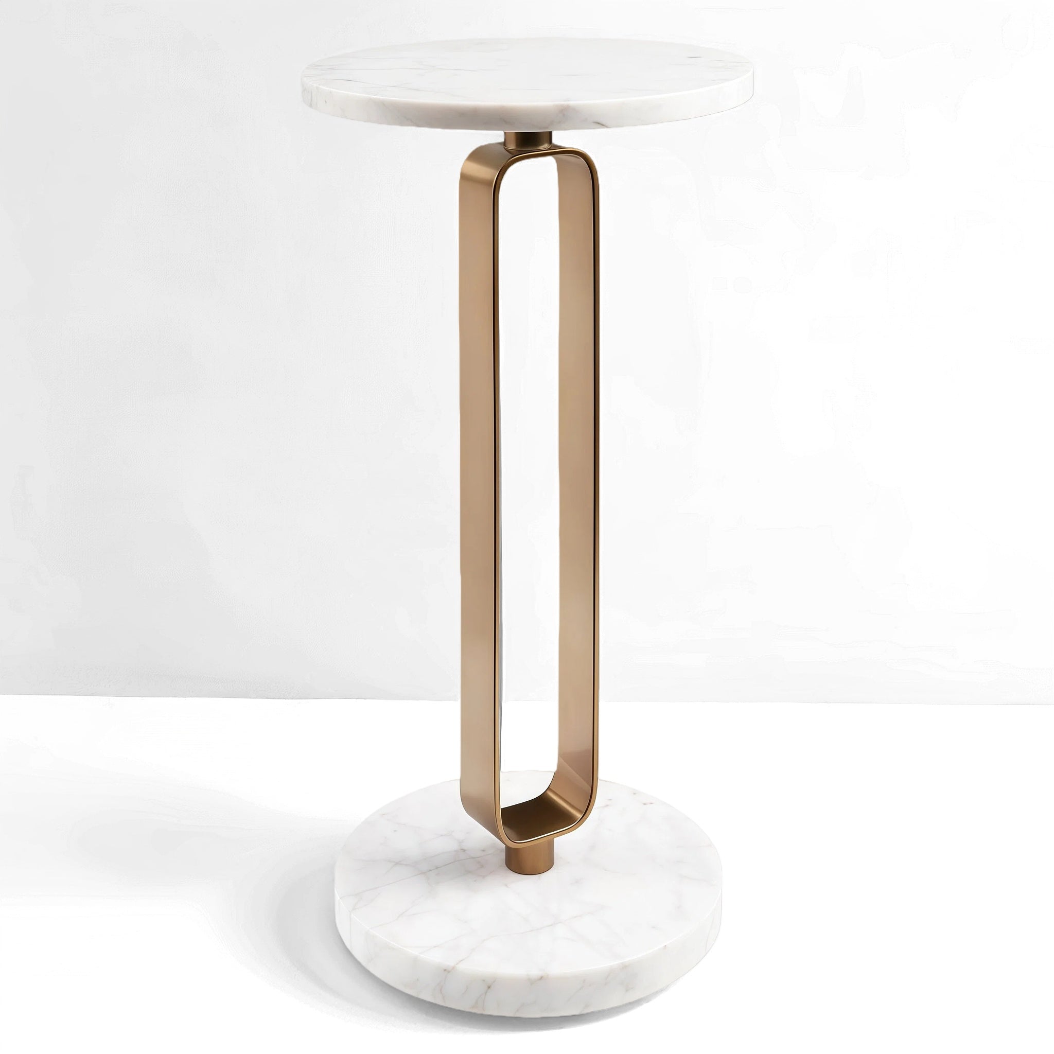 This Marble & Brass Pedestal Table is where modern glamour meets timeless elegance. The round marble top and base bring a cool, polished presence, while the slim brass-finished frame adds a warm, sculptural touch. Perfectly sized for holding a drink, a candle, or your favorite little vase, it slips effortlessly beside a chair, sofa, or even in a hallway as a chic catch-all. With its mix of materials and graceful lines, this table adds just the right dose of sophistication without ever feeling fussy.